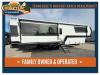Sleeps 4 Slides 3 Length 34 ft 11 in Ext Width 8 ft Ext Height 13 ft 3 in Hitch Weight 2298 lbs GVWR 15495 lbs Dry Weight 12276 lbs Fresh Water Capacity 75 gals Grey Water Capacity 90 gals Black Water Capacity 45 gals Tire Size 215/75 R17.5 Furnace BTU 35000 btu Available Beds King Refrigerator Type 12V Refrigerator Size 16 cu ft Cooktop Burners 3 Shower Size 30" x 42" Number of Awnings 2 Axle Weight 7000 lbs LP Tank Capacity 30 lbs Water Heater Type Tankless On Demand AC BTU 31500 btu TV Info LR 50" Smart Telescoping TV, BR 32" Smart TV Awning Info 11' & 15' Electric w/Neon COB/Dotless LED Lighting Axle Count 2 Washer/Dryer Available Yes Number of LP Tanks 2 Shower Type Standard Similar Floorplans
