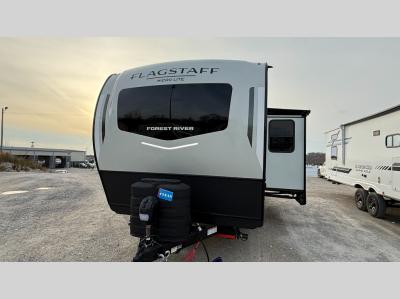 With any Flagstaff Micro Lite travel trailer by Forest River you will enjoy lightweight towing, durable construction, and added interior comforts to make each trip memorable! Each model features RoadTech tire pressure monitoring, Dexter Torflex axles, and nitrogen-filled Goodyear endurance tires for smooth towing from home to campground. The 6-sided aluminum framed construction provides a strong foundation so you can enjoy your RV for years to come, plus the radiant foil in the front cap, underbelly and slides help insulate your trailer. Additional exterior features include a 200W solar panel, back-up camera prep, frameless windows, and slam baggage doors. Each model includes the Great Expectations Package with roller shades, solid surface kitchen countertops, and hidden hinge cabinet doors. There is also an exterior hot/cold water port, outside speakers, a power tongue jack and stabilizer jacks, plus many more conveniences.