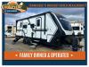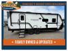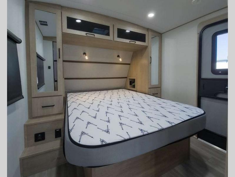Each of these includes exceptional features, like a 200W roof-mounted solar panel, high-capacity furnace, residential cabinetry, spare tire & carrier, and a universal docking station. Additionally, you'll have accommodating features scattered all throughout the trailer with the upgraded residential furniture in the interior, the solid surface countertops in the kitchen, motion sensor entry LED lighting, and the large panoramic windows in the interior. The aluminum framed fully laminated sidewalls and enclosed underbelly with suspended tanks will hold them up for your adventures on the road!