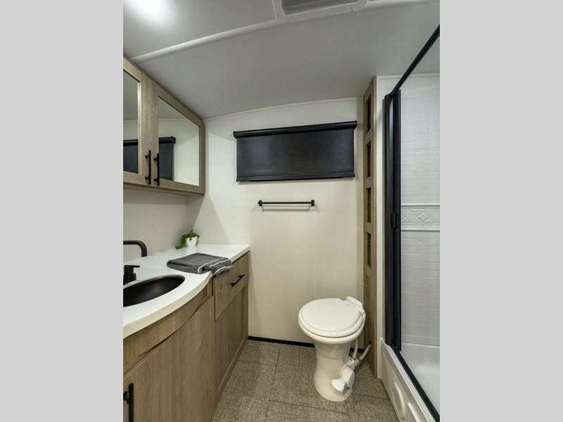 Sleeps 8 Slides 1 Length 29 ft Ext Width 8 ft Ext Height 11 ft 2 in Int Height 6 ft 9 in Hitch Weight 749 lbs GVWR 7850 lbs Dry Weight 6689 lbs Fresh Water Capacity 45 gals Grey Water Capacity 82 gals Black Water Capacity 45 gals Tire Size ST225/75R15LRE Furnace BTU 30000 btu Number Of Bunks 2 Available Beds Queen Refrigerator Type 12V Refrigerator Size 10 cu ft Cooktop Burners 3 Shower Size 30" x 36" Number of Awnings 1 LP Tank Capacity 20 lbs Water Heater Type On Demand Tankless AC BTU 15000 btu TV Info LR Hi Def LED TV Awning Info Power Adjustable w/LED Lights Axle Count 2 Number of LP Tanks 2 Shower Type Walk-In Shower Electrical Service 50 amp Solar Wattage 200 watts Similar Floorplans