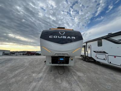 The Cougar Sport structural I-beam frame with stamped steel cross-members and outriggers, plus its AlphaPly roof membrane are what active RVers love about the construction of the Cougar line. The Cougar Sport models are no exception when it comes to a great package, as well as being smaller and lighter weight than their big brother Cougar models. A one-piece, heated and enclosed polypropylene underbelly will add protection against the elements, and the electric stabilizer jacks will provide more stability. On the inside, residential shaker style hardwood cabinet doors and decorative crown molding, plus seamless pressed countertops and an on-demand water heater will make your unit feel even more like home. You are also sure to appreciate the shiplap style decorative accent wall behind the bed, a porcelain foot flush toilet in the bathroom, plus residential kitchen hardware, and so much more.
