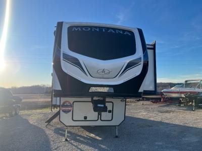 Live the high life with a Keystone Montana High Country fifth wheel! You'll have all the luxury you need with these units. They come with a MaxTurn™ front cap with KeyShield™ automotive-grade paint, a fully walkable roof with Alpha seamless TPO membrane system, and an insulated underbelly with forced hot air and electric tank heaters. The MORryde CRE3000 suspension with wet bolts helps provide a smooth tow, and the Ground Control® four-point electric auto-leveling with hitch memory will make set-up quite easy. The interior is elegantly appointed with the Thomas Payne Collection furniture, hardwood decorative slide-out fascia, Beauflor® vinyl throughout, accent crown molding, and premium solid surface kitchen countertops.